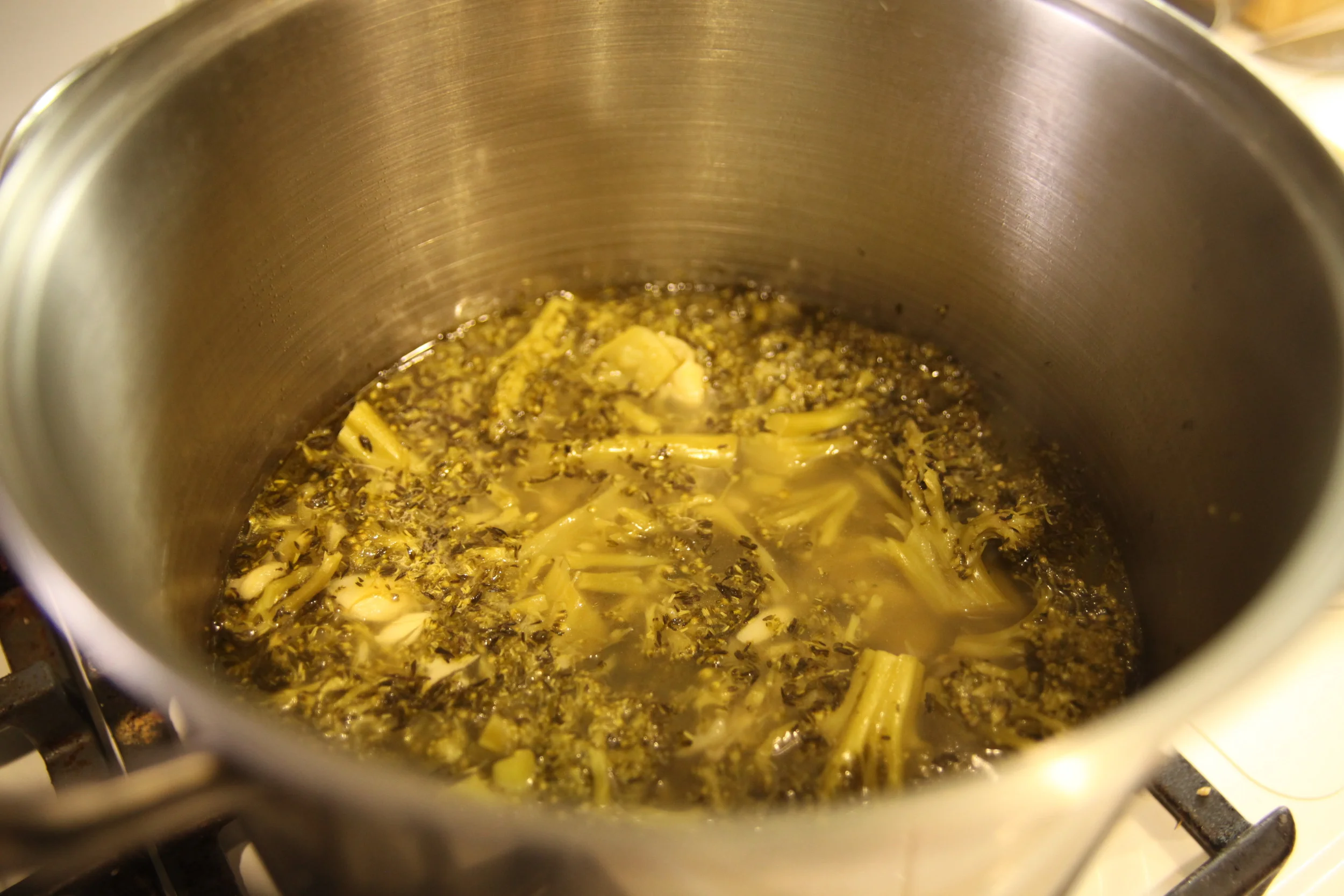 7. Once at a boil, reduce heat to medium and simmer for about 30 minutes or until broccoli is tender.